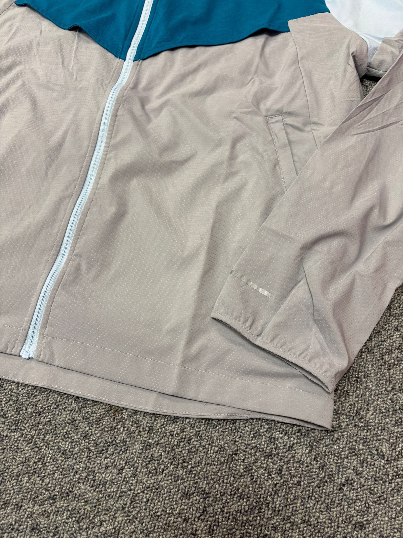 La Windrunner Blue joue pleinement son rôle de veste running technique. Son tissu résistant au vent limite les infiltrations d’air froid, ce qui en fait un allié précieux lors des saisons intermédiaires. Elle se montre également utile face à une pluie légère, protégeant le haut du corps sans alourdir la silhouette. La capuche ajustable renforce cette protection et permet de s’adapter rapidement aux changements météo. C’est typiquement le genre de pièce que l’on garde toujours à portée de main dans son sac de sport.